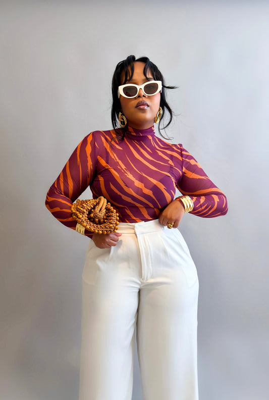 Aminah Mesh Bodysuit - Magenta Print